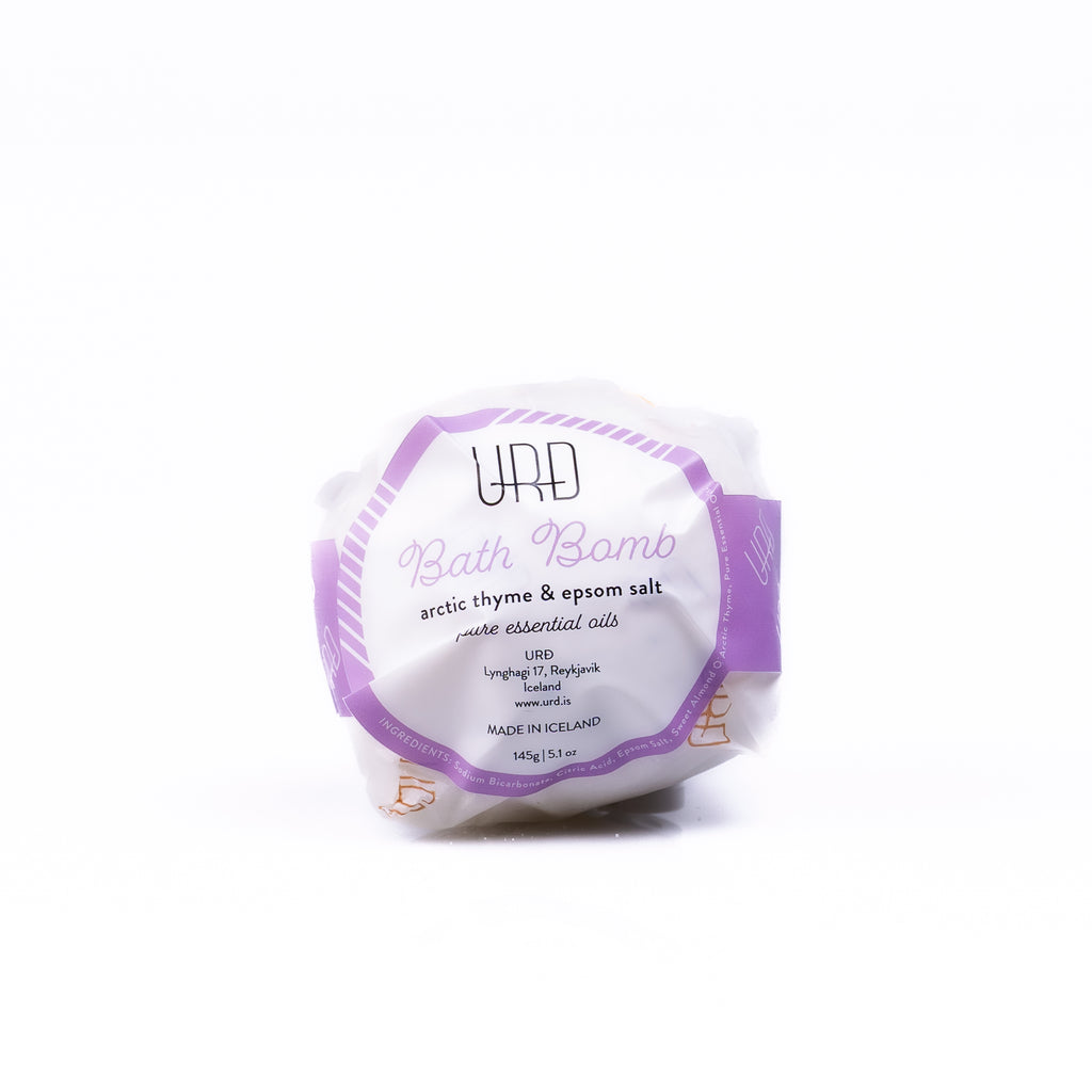 Baðbomburnar frá URÐ eru handgerðar og innihalda steinefnaríkt epsomsalt sem linar þreytta vöðva, magnesíumríkt sjávarsalt frá Hafsalti og repjuolíu frá Sandhóli sem er vítamínrík og veitir húðinni vernhttps://v2.langify-app.com/products/11011697#d og mýkt.